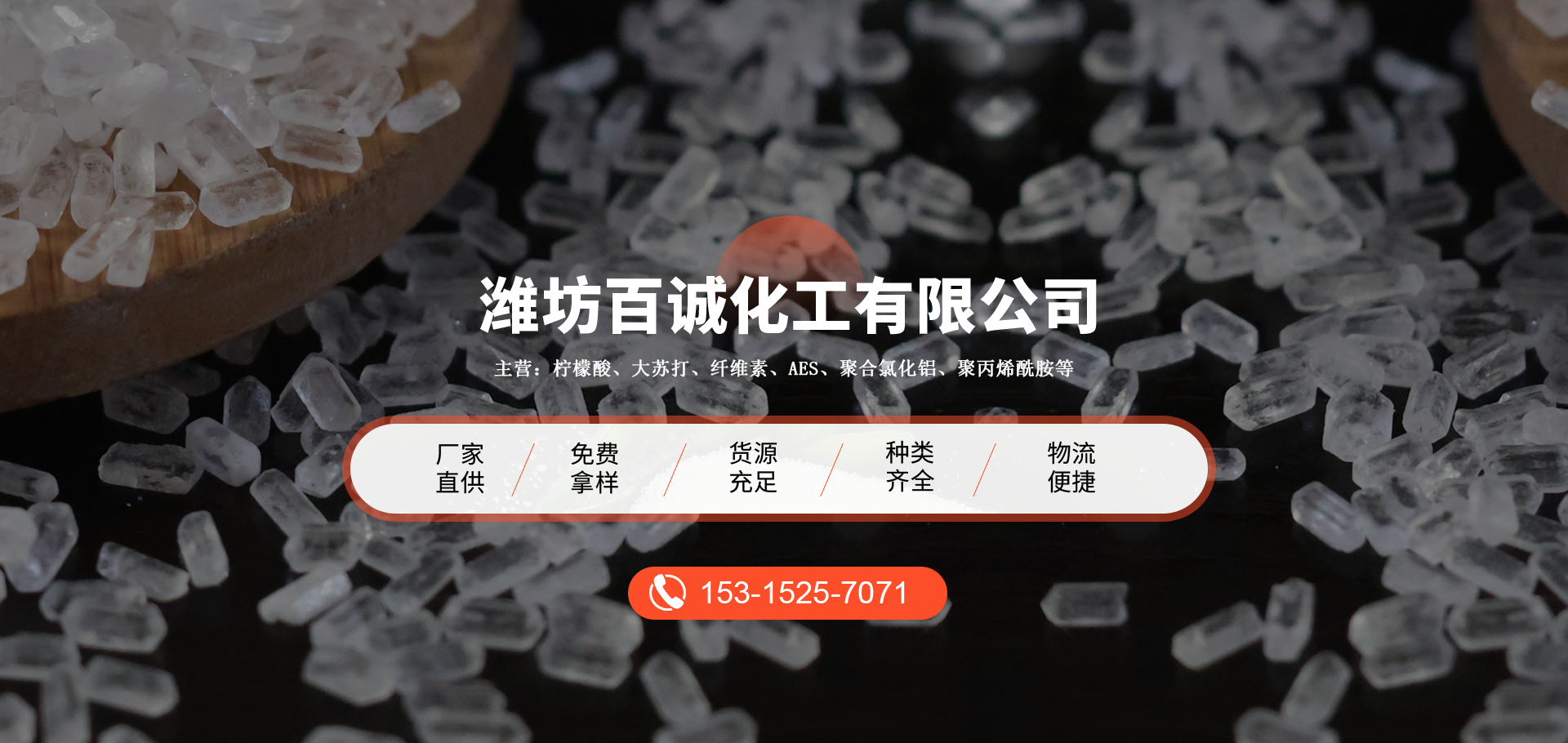 以品質(zhì)贏(yíng)得客戶(hù)滿(mǎn)意口碑成立于山東的濰坊百誠(chéng)化工有限公司多年來(lái)與國(guó)內(nèi)外多家企業(yè)工廠(chǎng) 形成長(zhǎng)期合作,形成了競(jìng)爭(zhēng)力的化工原材料供應(yīng)、銷(xiāo)售和服務(wù) 渠道,主營(yíng):大蘇打、葡萄糖、檸檬酸、纖維素、消泡劑、AES等。